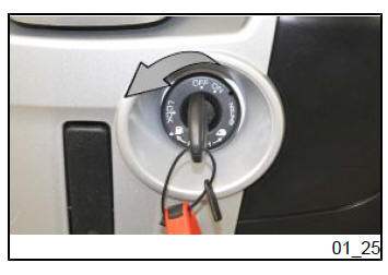 To open the seat to the positions with the ignition switch in OFF and ON, press the key and rotate counter clockwise.