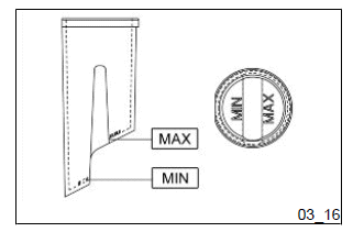 4. If necessary, perform the top up, with the engine cold, in the case that you find the liquid is too close to the minimum level.