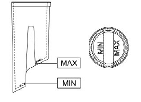 and MAX. Top-up when the liquid does not reach the level MIN.
