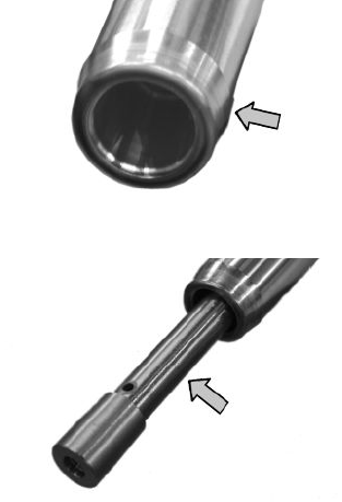 - Check that the stop bushing for the hydraulic rod is correctly fixed through caulking.