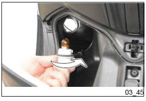 - Remove the lamp holder, rotating it towards the inside of the vehicle