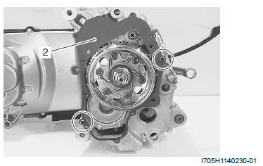 NOTE Make sure to engage the starter clutch with the starter driven gear.