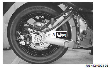 - Install the rear swingarm mounting bolts and rear wheel nut temporarily.