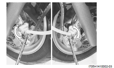 Removal 1) Remove the front leg shield. Refer to "Front Leg Shield Removal and Installation". 2) Drain brake fluid. Refer to "Brake Fluid Replacement".