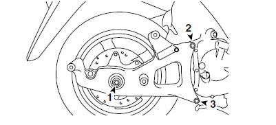 3. Tighten the rear wheel axle nut to 135 Nm (13.5 m*kgf, 98 ft*lbf).