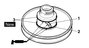 Install the secondary sliding sheave onto the secondary fixed sheave "2" with the oil seal guide "3".